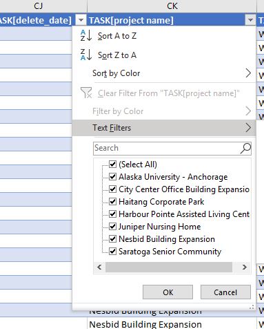 Voila we have the TABLE Task filtered, with only 7 Projects