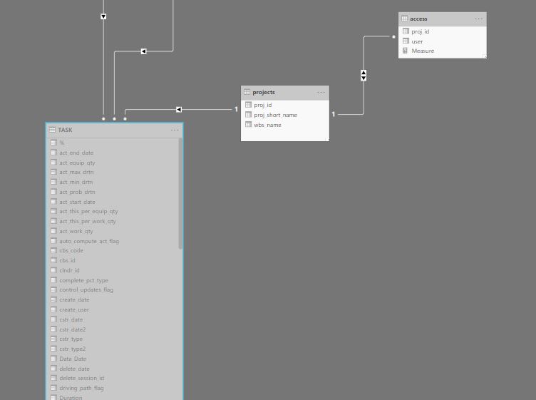 Basically, table access get filtered by PowerBI, then it will filter table PROJECT, that will filter table TASK