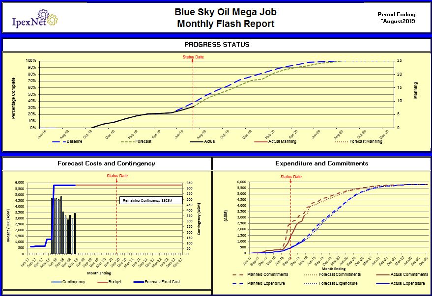 Apologies for the look and feel below, I just pulled in the data to showcase that indeed you can drive a dashboard with what is effectively just a few lines of data that every project already has. We can bring together cost, schedule, progress, and commentary quite easily and in a very data friendly way.