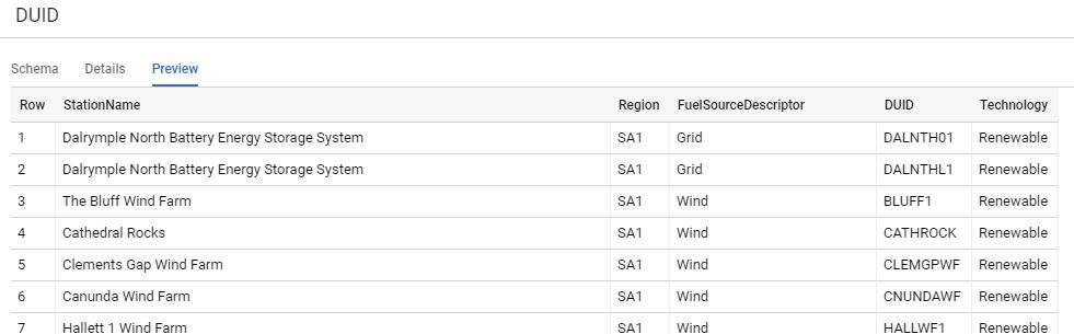 DUID : Generator ID , ( power station, solar, wind farm etc)