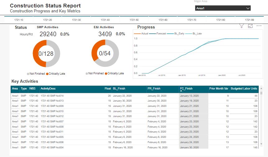 Again, the extension of this are endless. At this stage, we are starting to see how pre filtered views provide more focused dashboard as compared to a one size fits all. Sitting in an EPCM world, most of the detailed activities and schedules are managed by our contractors. Thus, this construction view is more suited to using an export from a contractor Level 4 schedule.