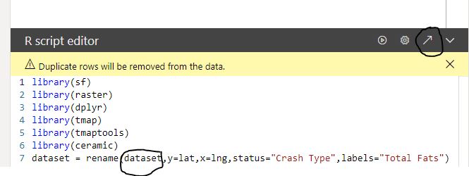 The PowerBI team has done a fantastic job, all you have to do is add the R script visual, add the fields you need, which automatically create a dataframe and write your code, and with one click, you can edit your code in RStudio!!!