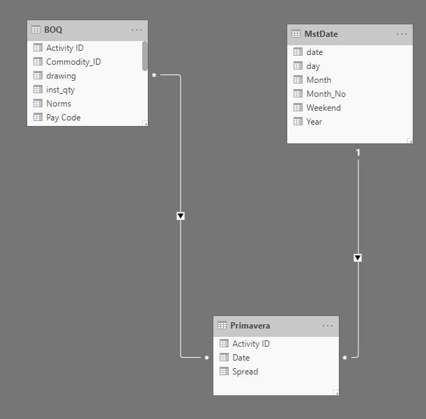 Planned_Hours = sumx(Primavera, CALCULATE([remaining_hrs],filter(BOQ,BOQ[Activity ID]=Primavera[Activity ID]))*Primavera[Spread])