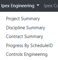 If we expand our menu, we see various views into our data: by project, discipline, contracts, schedule IDs and a unique view for controls engineering