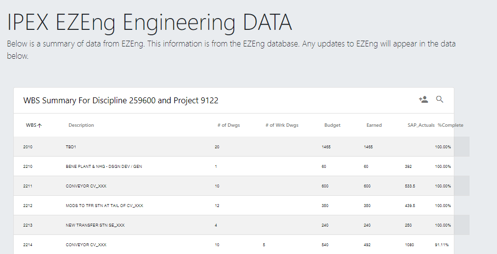 It is in this view that we can see detailed metrics per WBS/Discipline pair.