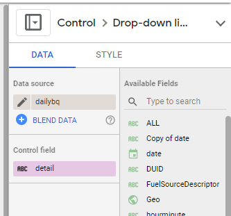 now you add the Parameter “detail” to a filter control, notice Parameter are color code Pink, a nice visual clue !!