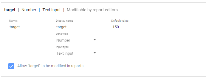 define parameter “Target” , currently BigQuery parameter does not accept range, instead you have to type a number
