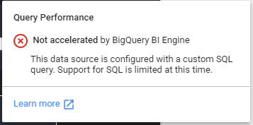 Please notice, as the Query is not accelerated by BI Engine in Data Studio, the report will incurs BigQuery cost, very negligible for small tables but still π
