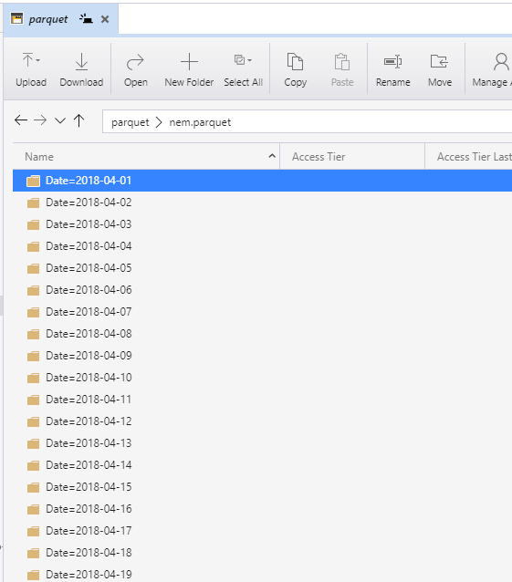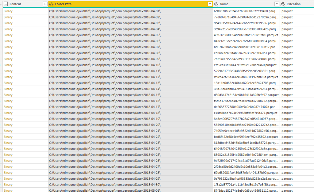 and here is the results, a folder of parquet files grouped by Date