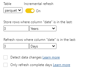 Instead of Direct Query, let’s try a more practical use case, I configured Incremental refresh to change dates only for the Last 3 days