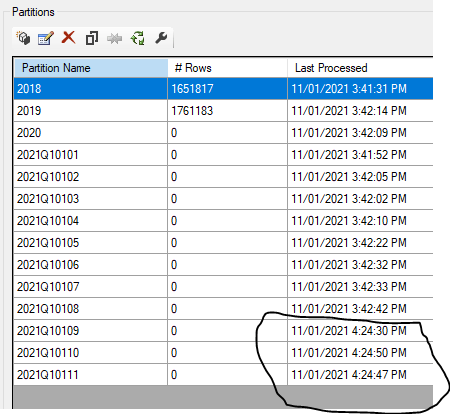 Just to be sure, I have done another refresh at 4 :24 PM and checked the Partitions using SSMS
