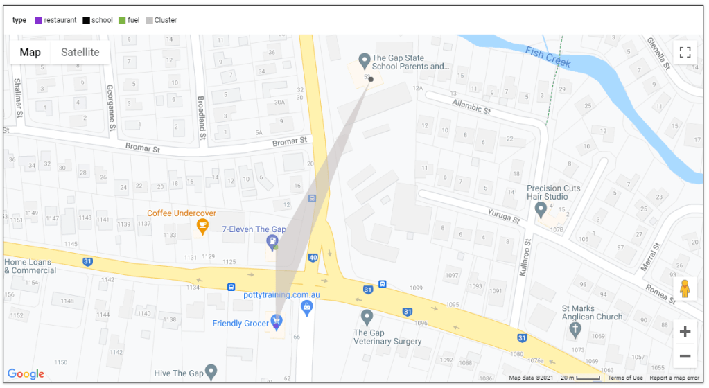 Here is an example when selecting the tags (restaurant, school and fuel), I get 136 cluster