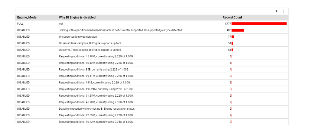 For example, I aggregate the reason why the Query was not accelerated by BI Engine