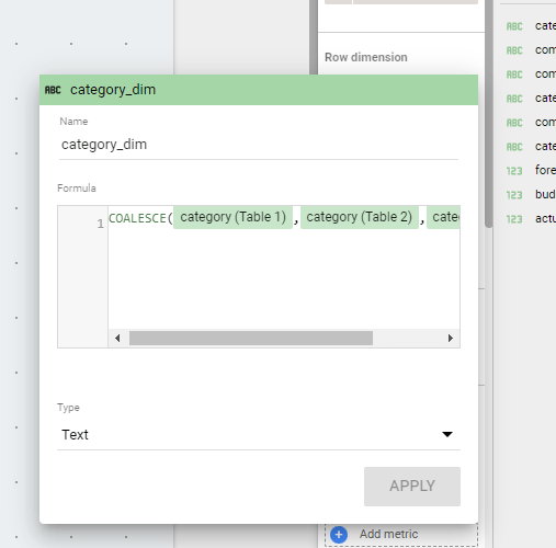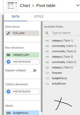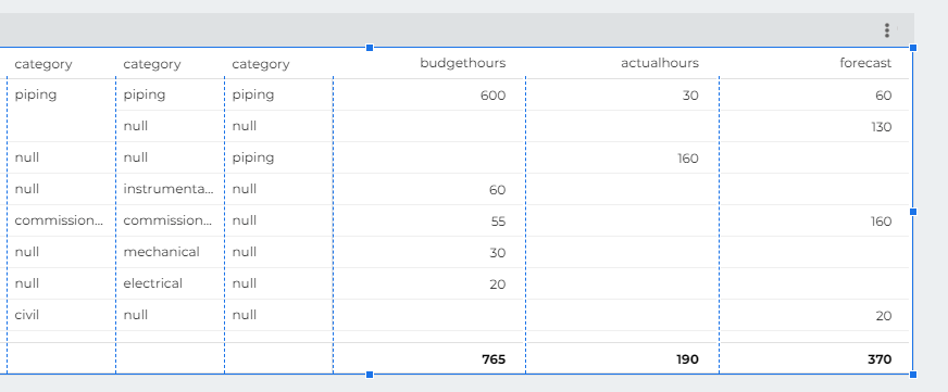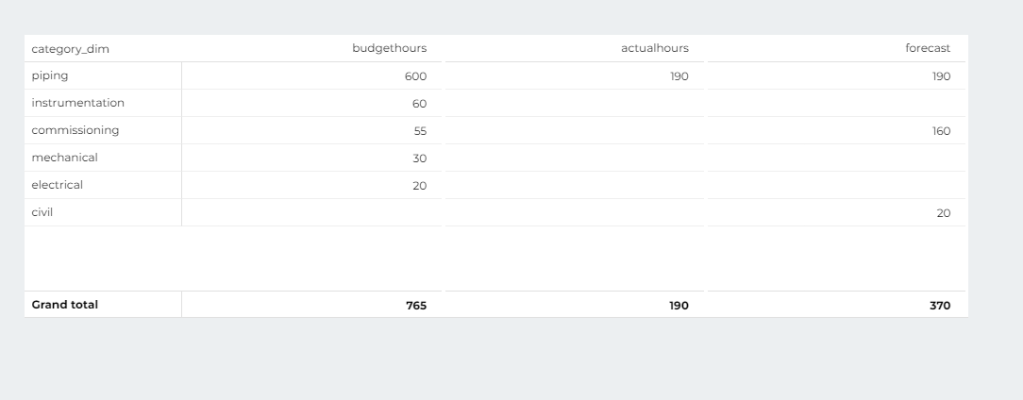 Notice that the category Civil exist only in forecast, and instrumentation, mechanical, electrical exist only in the Table Budget, how to show the results in the same Visual