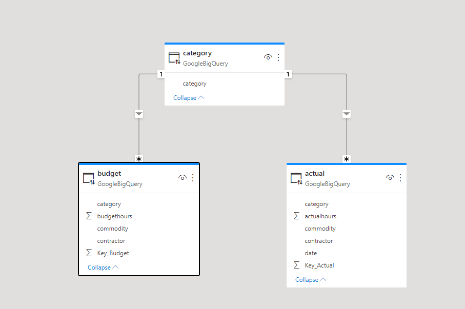 Let’s build a very simple Semantic Model in PowerBI and Thoughtspot, two fact tables with one common dimension, Both Data is hosted in BigQuery