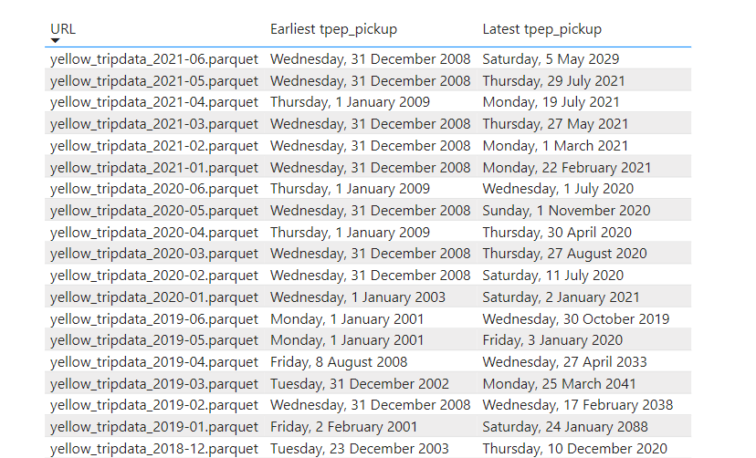Initially I didn’t really believed that PowerQuery can download such a big volume of data, my first set back , PowerQuery can not read parquet files available in public url, but as usual Chris Webb has an excellent blog explaining the reason, and gave a workaround.