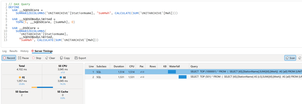 That’s very strange, 2 SQL Query and 1 Second spent by the Formula Engine, and the two SQL Queries are not even in parallel