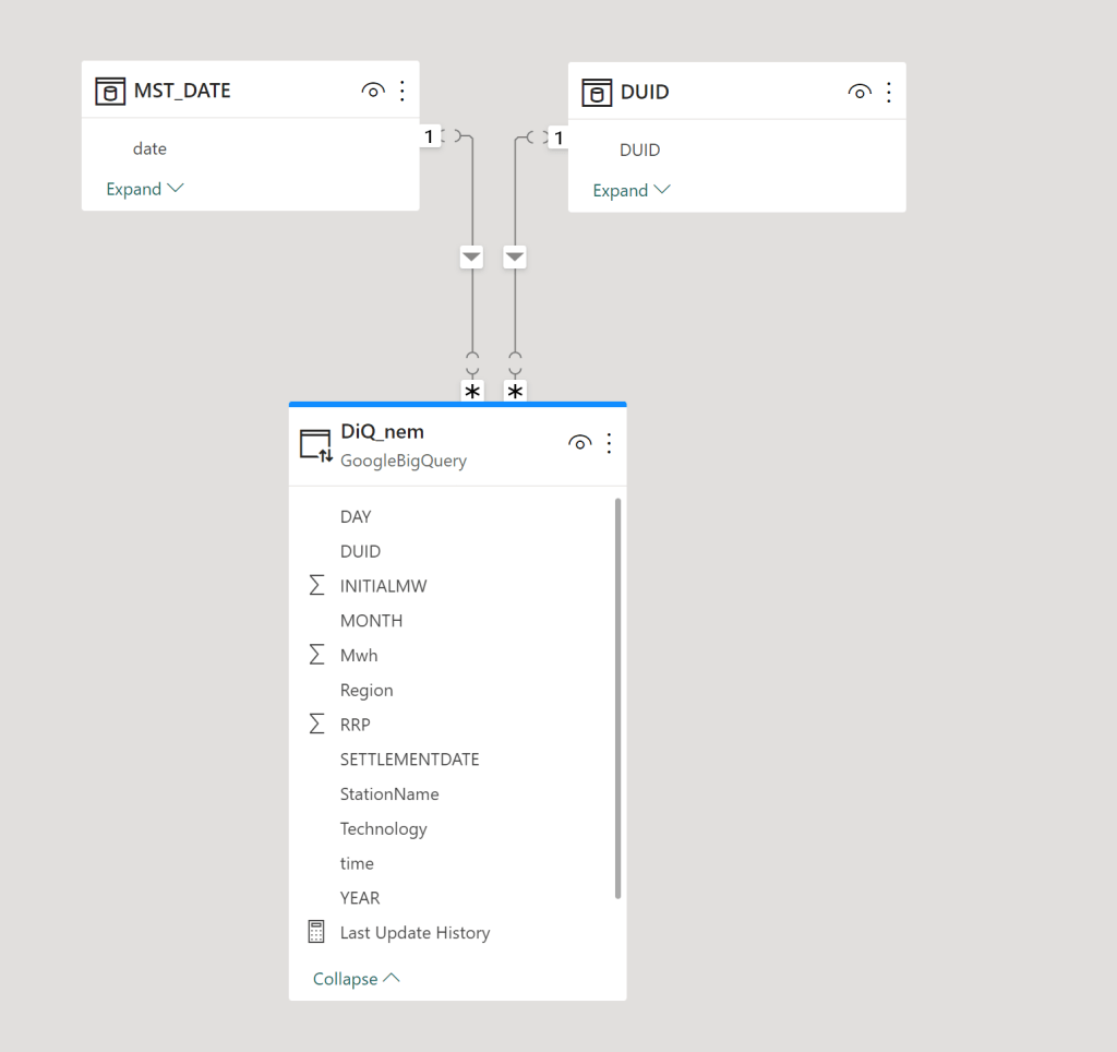 The Model is very simple , a fact table in Direct Query mode, and two dimensions in Import mode, a very simple star schema