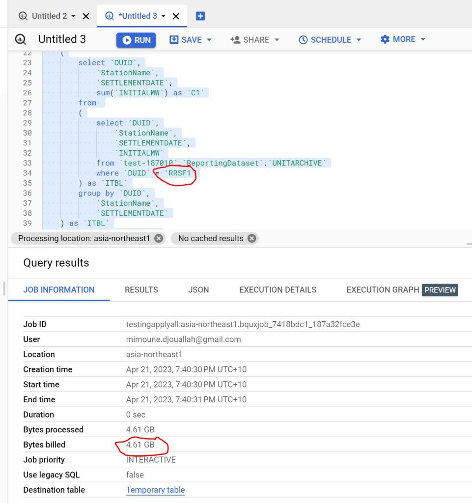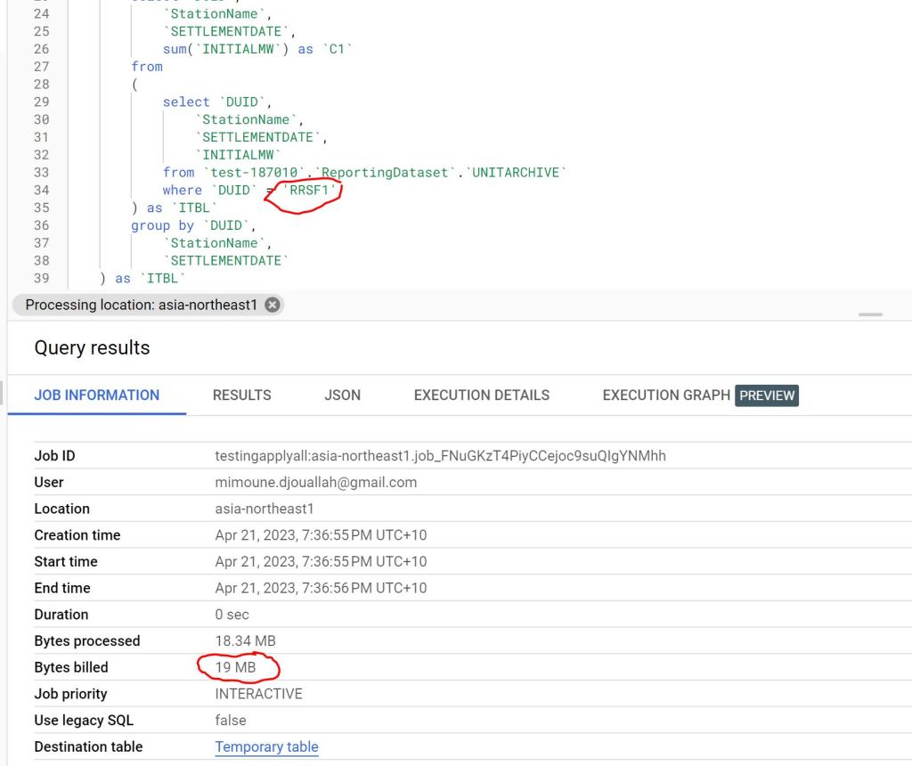 The Same Query is substantially cheaper 🙂 from 4.6 GB to 19 MB, that’s 230 times cheaper.