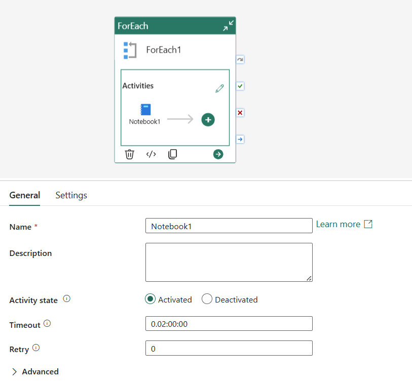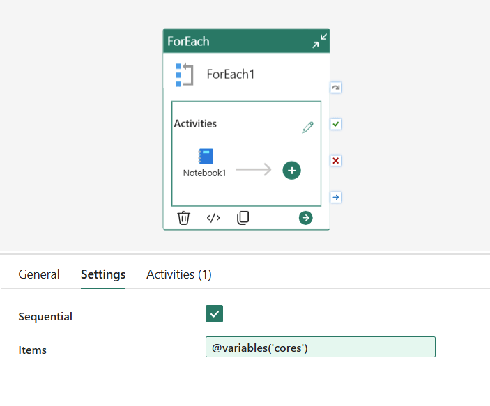 Because the vCore value is just a pipeline parameter, you can use a ForEach activity to run the same notebook across multiple core counts in sequence — great for benchmarking or profiling how your workload scales.