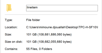 DuckDB support multiple mode, you can just run Queries directly on parquet files, you can load the data to memory using temp tables or you can import the data using DuckDB storage format, for performance reason I import the data, DuckDB don’t support compression very well yet, and consider the storage format as a work in progress, Index currently are not compressed and take a lot of space, without index, the size is around 3.6 GB