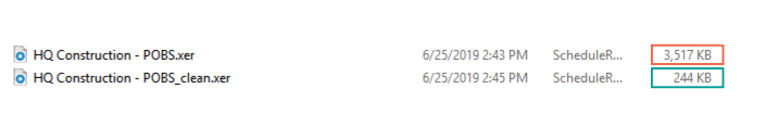 You can see a significant difference of the file size before and after cleaning POBS which greatly affects the time needed to import XER file into a Primavera P6 database.